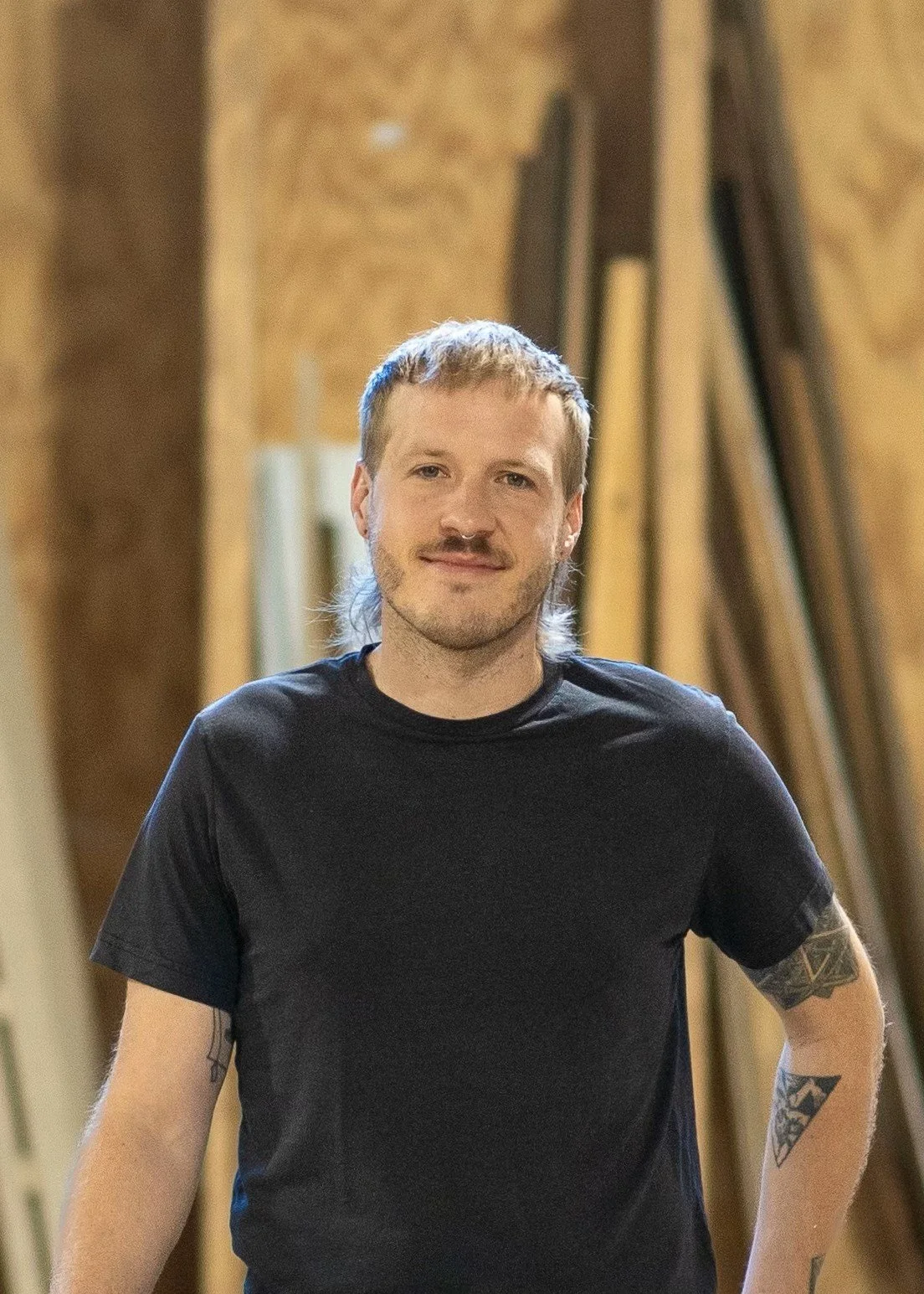 Brought up in Kentucky and Ohio, Jamie tried his hand at classical music, organic farming, and architectural preservation (among other things) before finding his passion in craft. He trained in fine woodworking and furniture design at the Vermont Woodworking School and has participated in long-term fellowships at the Center for Furniture Craftsmanship and the Peters Valley School of Craft. In 2021, Jamie was awarded the John D. Mineck Furniture Fellowship, and in 2024 he participated in the Windgate Arts Residency Program through the Museum for Art in Wood. He has shown work, taken part in residencies, and managed woodshops across the country.